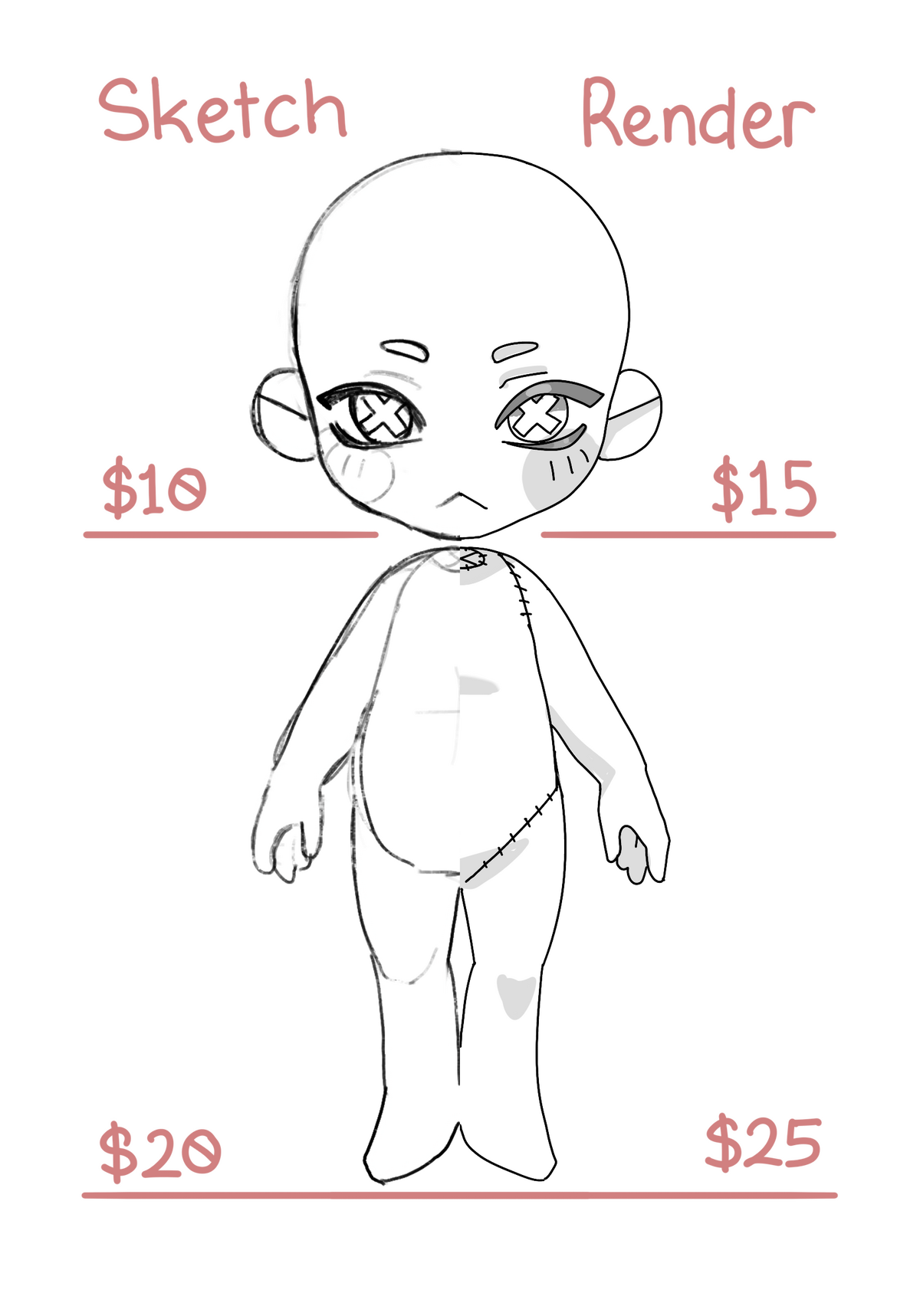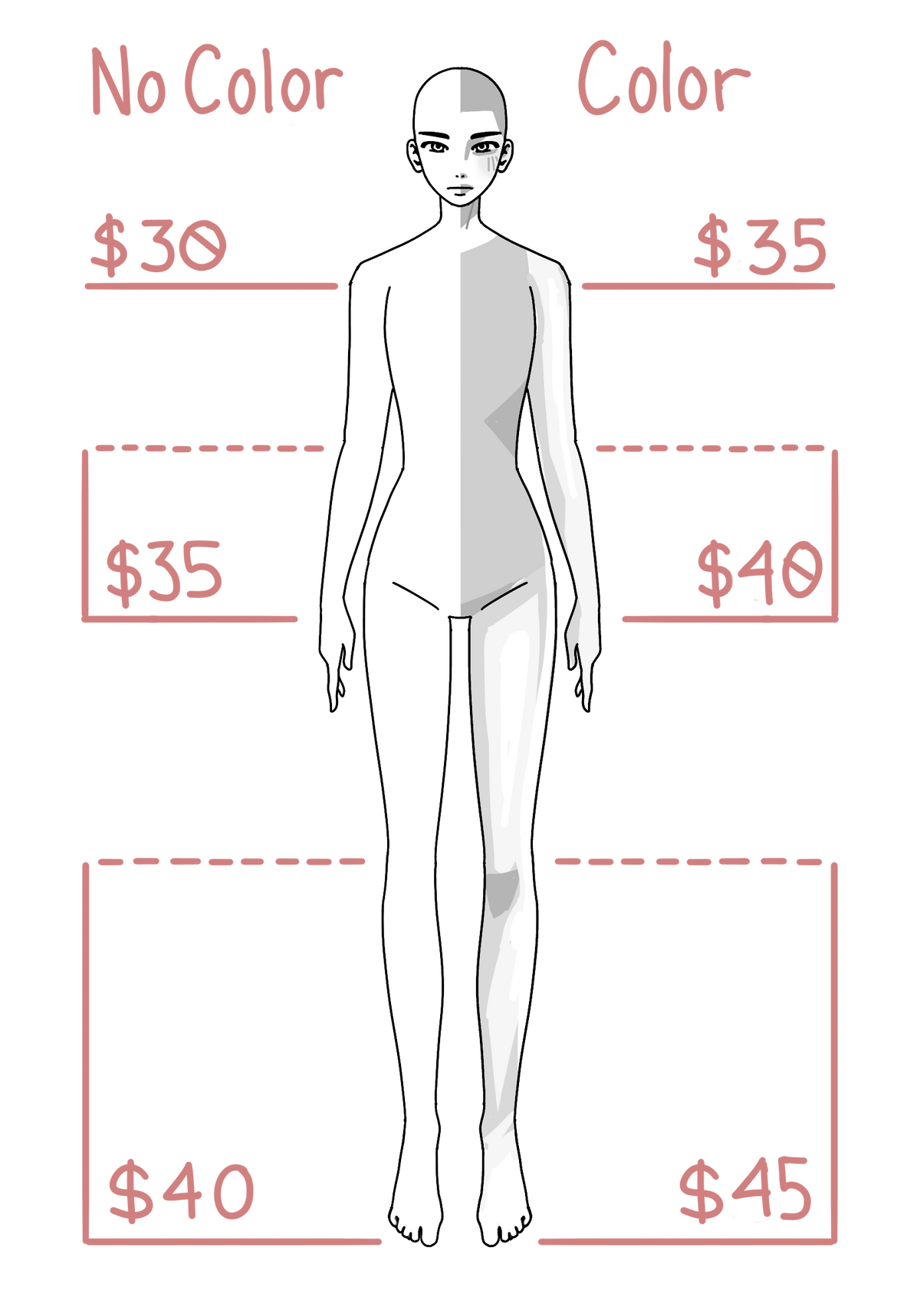 | Minimal Shading (Clean/Sketchy Lineart) | $45 |
